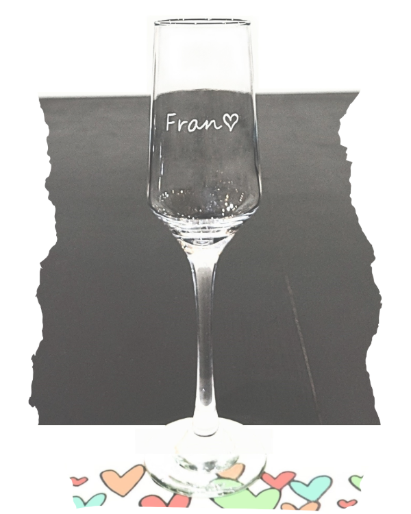Copa brunello de Champagne con nombre y emoticón